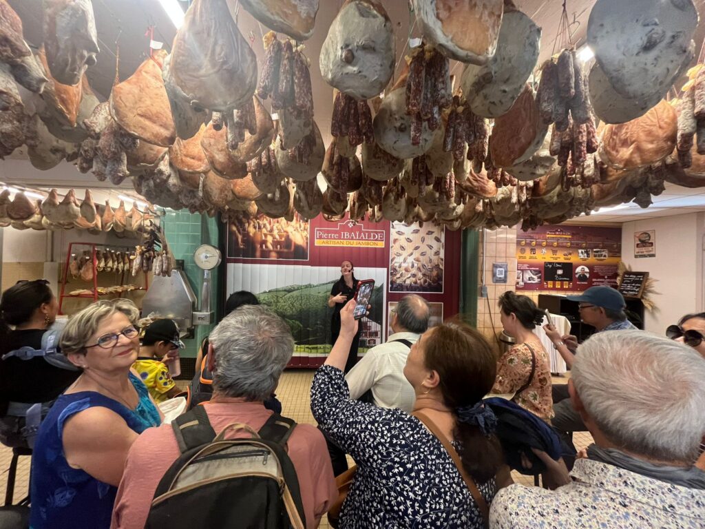 À 11h00, nous avons eu le plaisir de découvrir l’atelier de salaisons Pierre Ibaïalde à Bayonne. Une visite passionnante qui a permis de mieux comprendre les secrets de fabrication du jambon basque et de savourer ce savoir-faire local réputé.
