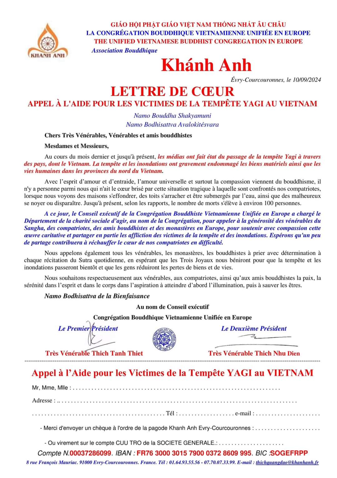 Don généreux de l’association Vietnam 17 à Saintes